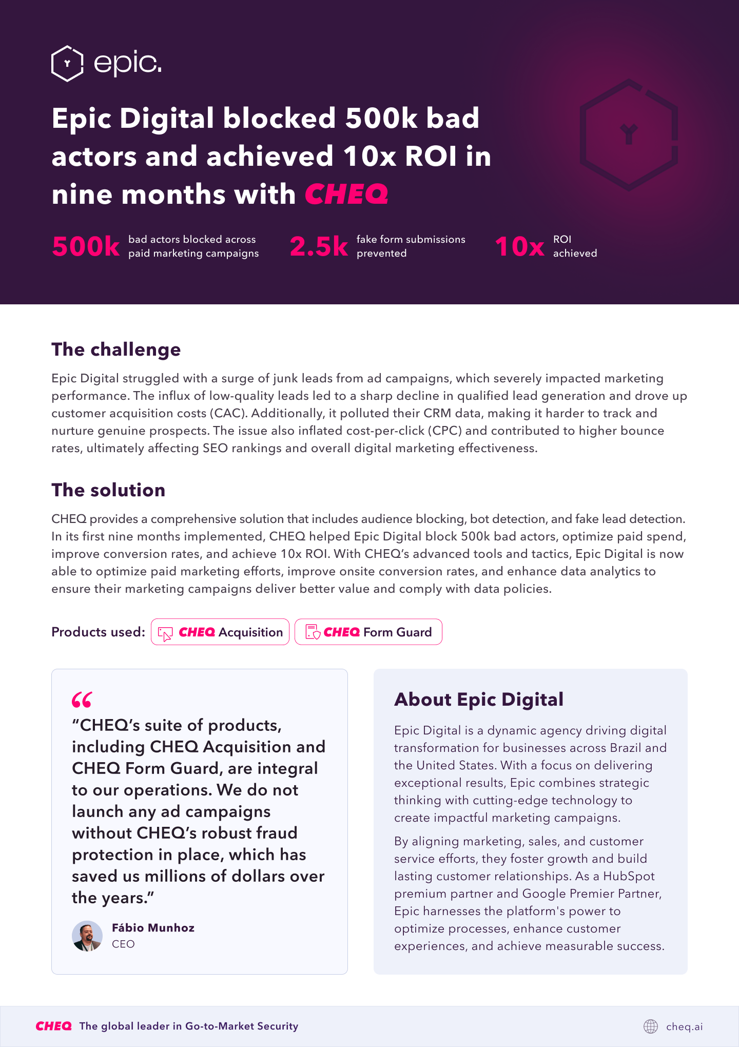 Epic Digital blocked 500k bad actors and achieved 10x ROI in nine months with CHEQ