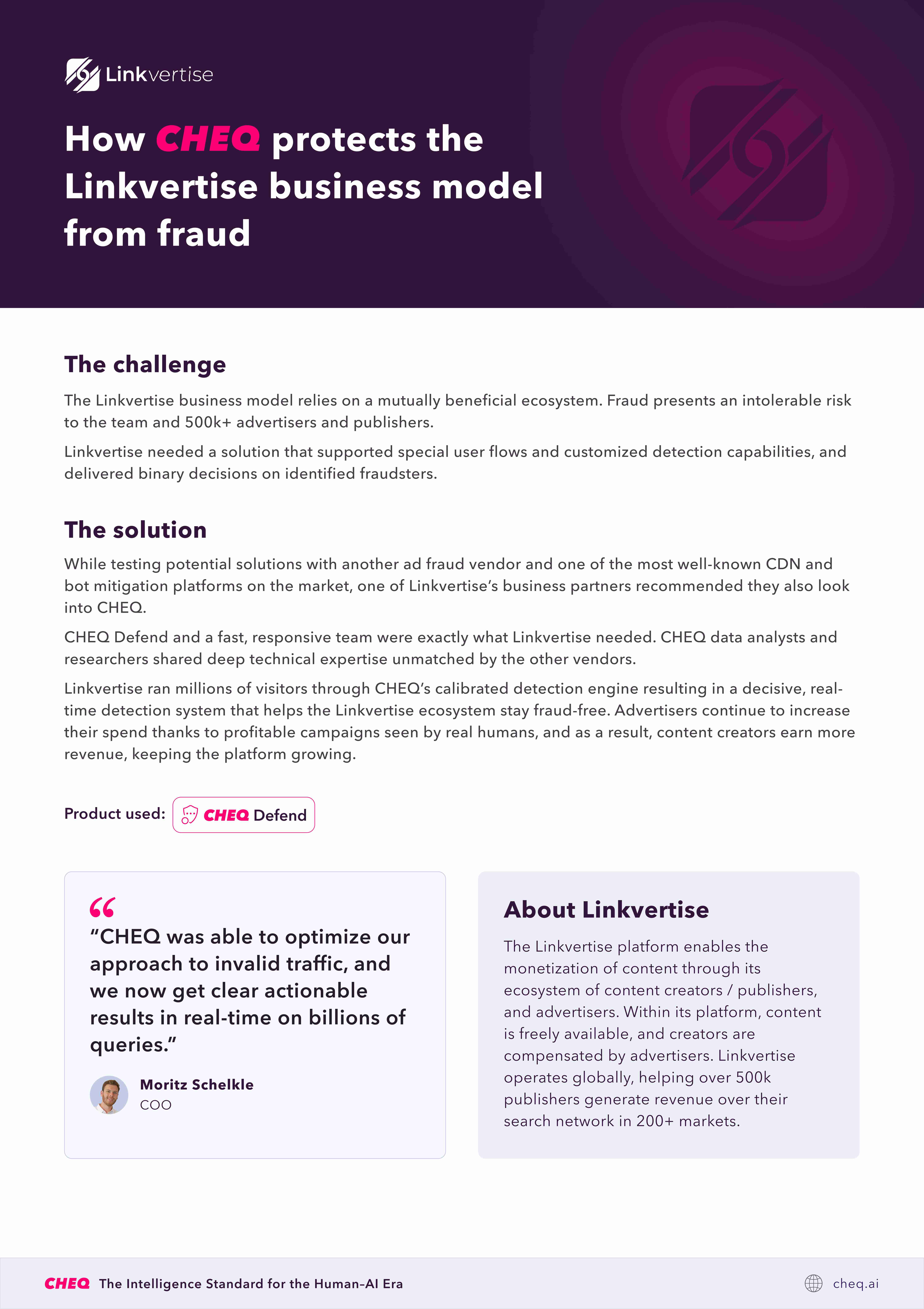 How CHEQ protects Linkvertise and its partners from fraud globally