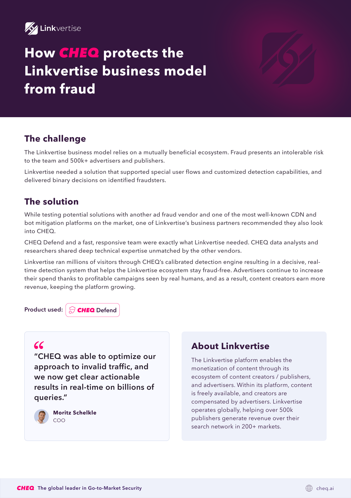 How CHEQ protects Linkvertise and its partners from fraud globally