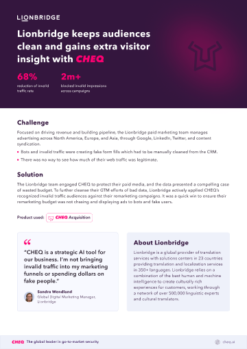 Lionbridge keeps audiences clean and unlocks extra visitor insight with CHEQ