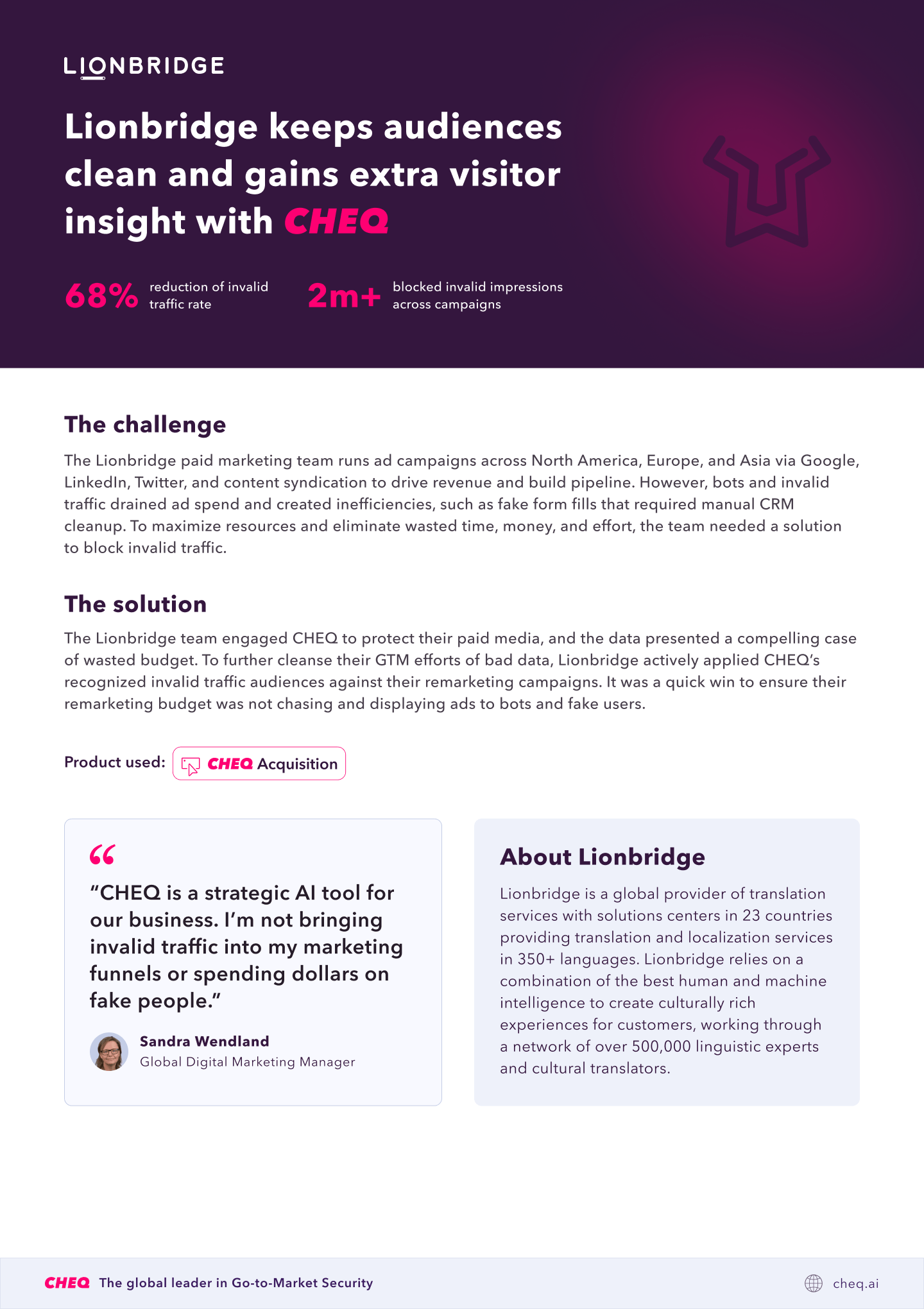 Lionbridge keeps audiences clean and unlocks extra visitor insight with CHEQ