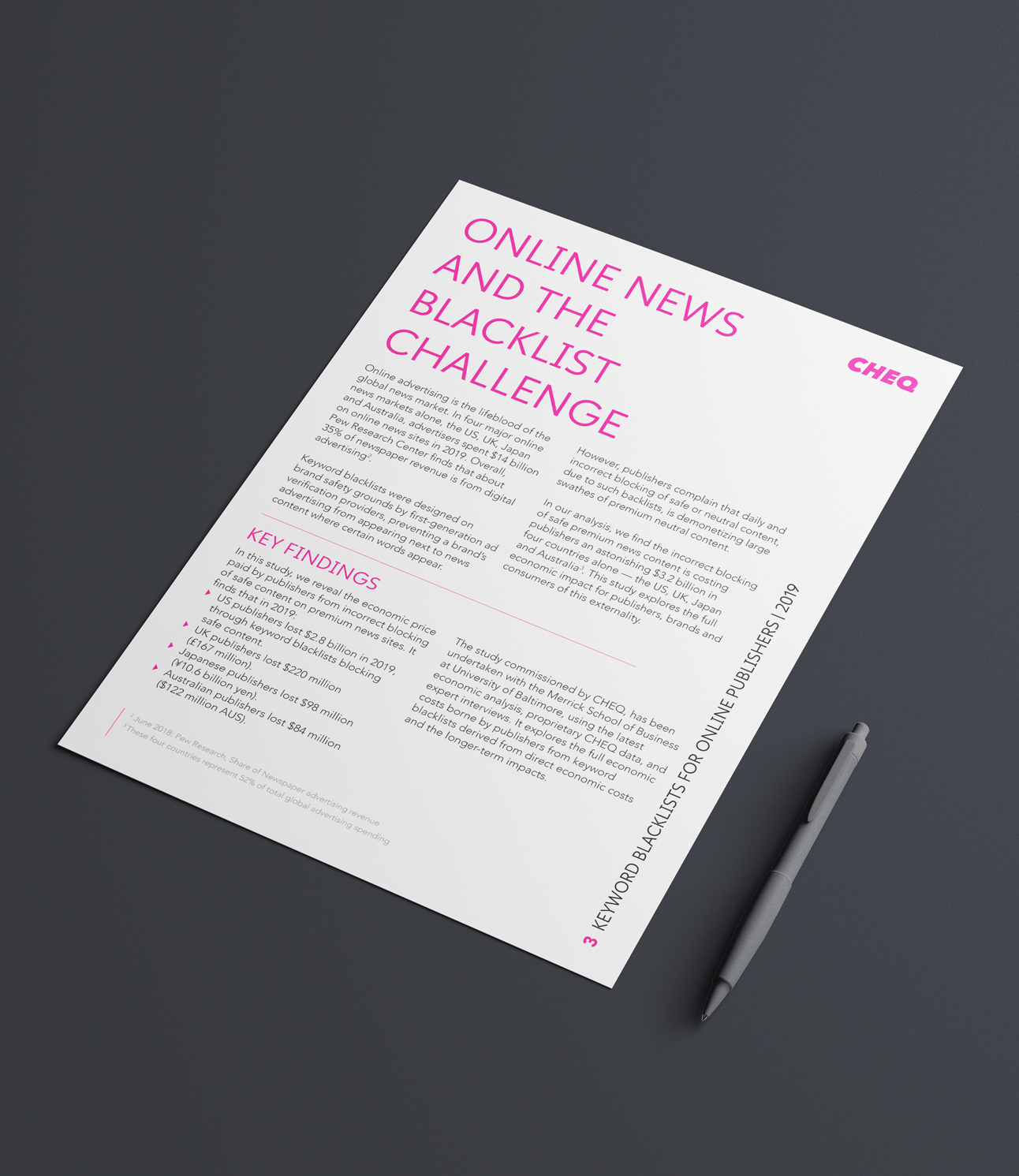 In this study, we combine research by Professor Roberto Cavazos at the Merrick School of Business at the University of Baltimore, with our own unique data, to create the most in-depth picture revealing the economic cost of brand safety blacklists for online publishers. For the first time, unprecedented economic research, analyzes the revenue losses suffered by online news sites in four major online news markets: the United States, The UK, Japan and Australia.